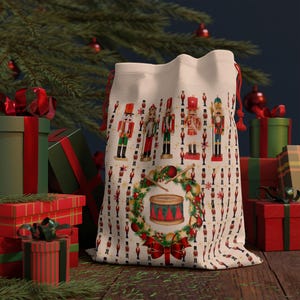 This nutcracker-themed wrapping paper is perfect for holiday gift wrap, adding a luxury touch to Christmas presents. It is a sophisticated choice for festive gift wrapping, capturing the season with its classic design.