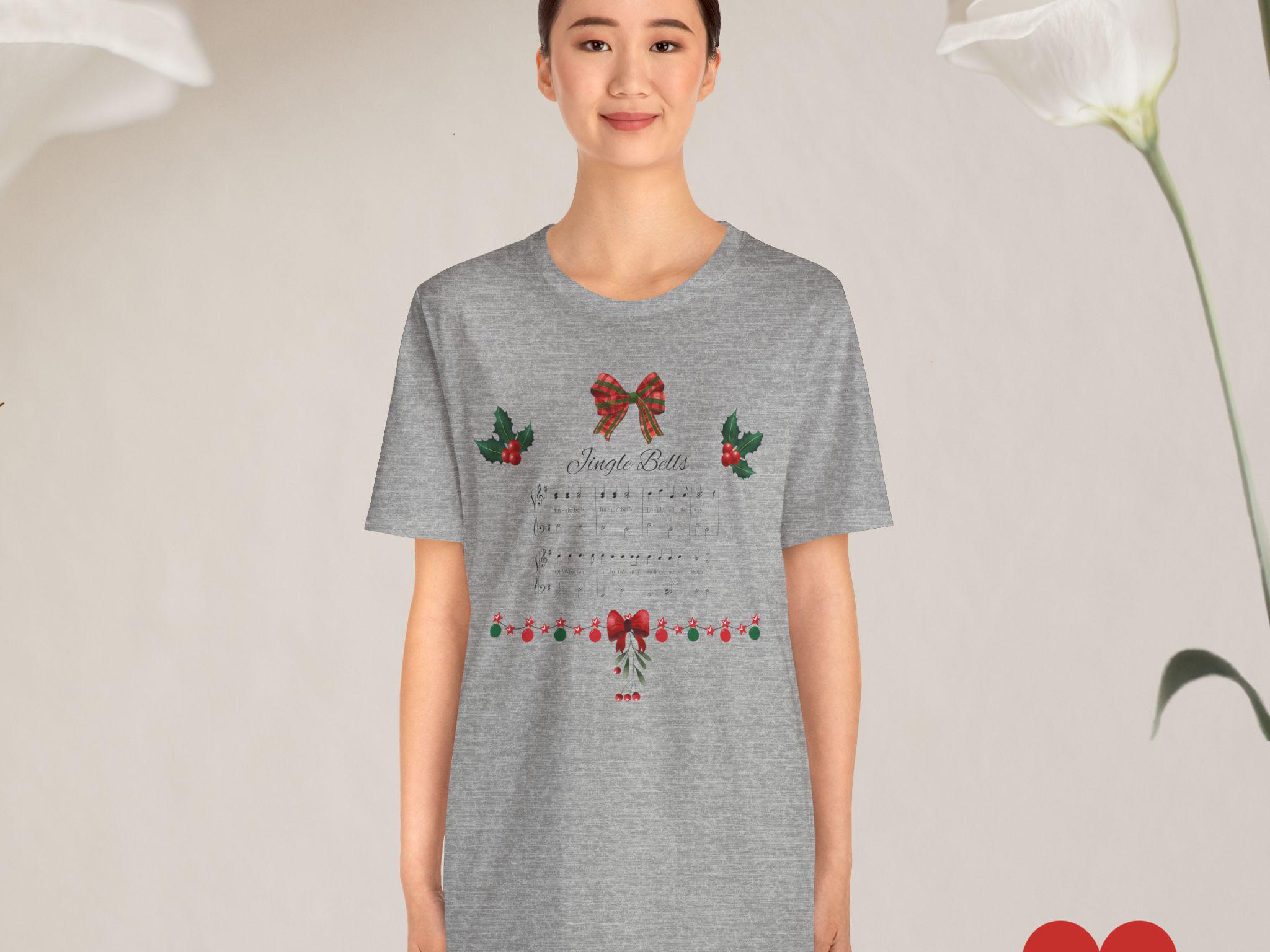 Get ready to celebrate the festive season in style with our Jingle Bells Christmas t shirt. This cozy and fun holiday shirt is perfect for family Christmas gatherings and will keep you feeling merry and bright. Featuring a playful design that connects the spirit of the season with a musical edge. Whether you're wearing it at home by the Christmas tree or out celebrating the New Year, this Christmas shirt will spread joy and cheer wherever you go. Pair it with your favorite holiday outfits and enjoy the compliments that follow as you showcase your shirt spirit this Happy Christmas! Don't miss out on this must-have piece for your holiday celebrations!