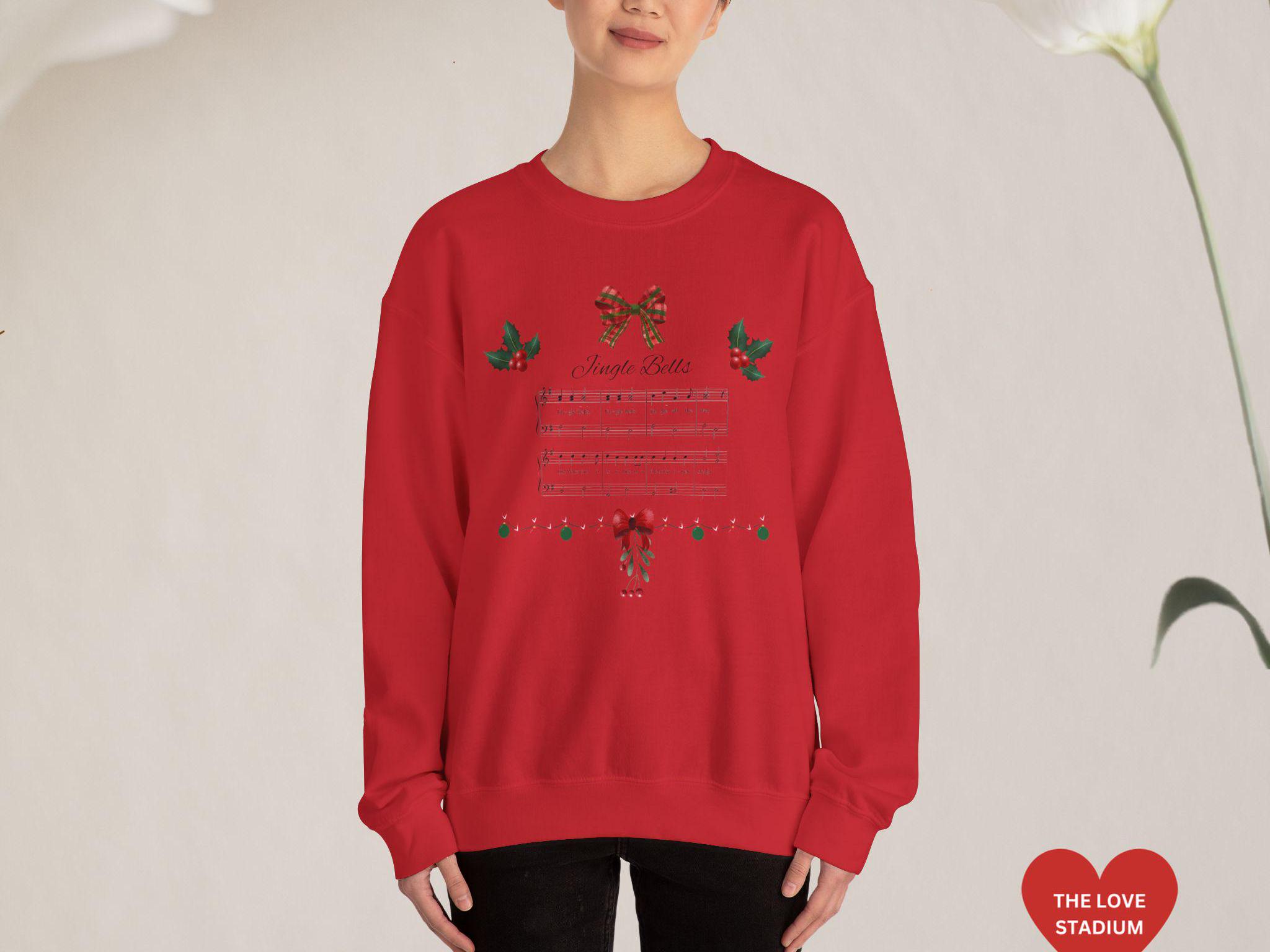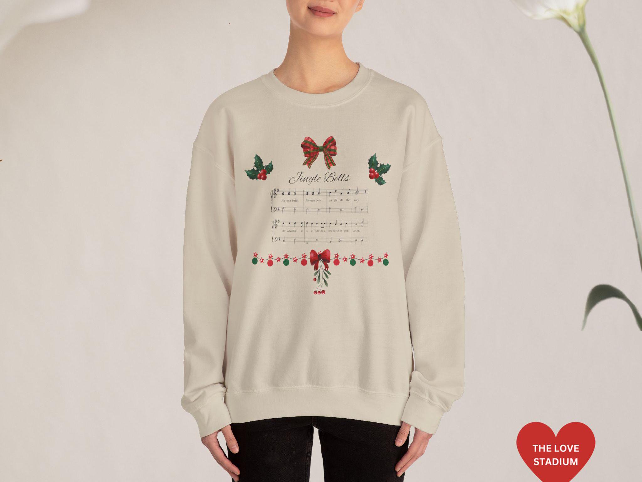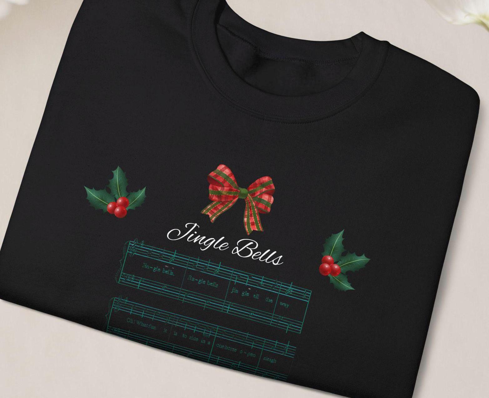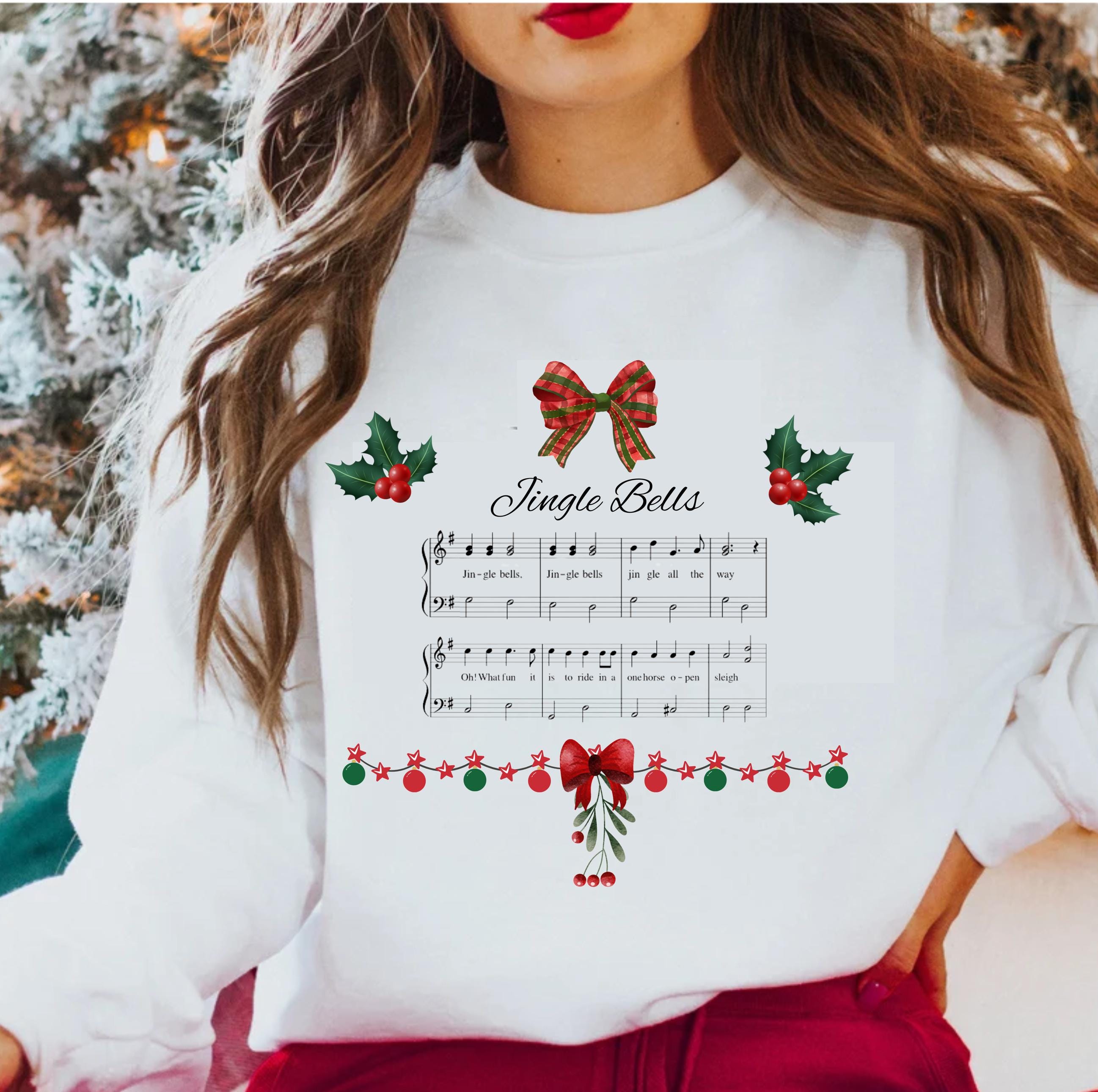 Jingle Bells Merry Christmas Sweatshirt. Celebrate the magic of the festive season with our delightful Jingle Bells Music Sheet Christmas sweatshirt. This cozy sweater features music sheet of Jingle Bells making it a perfect singing family Merry Christmas design that pays homage to your family sing a long, making it a perfect addition to your holiday wardrobe. Whether you're enjoying a festive gathering or simply lounging at home, this Christmas sweatshirt will keep you warm. It's an ideal Christmas gift for any music lover or anyone who adores Christmas. Get ready to spread holiday cheer with this beautiful Jingle Bells Merry Christmas sweatshirt, perfect for celebrating the season in comfort and style!