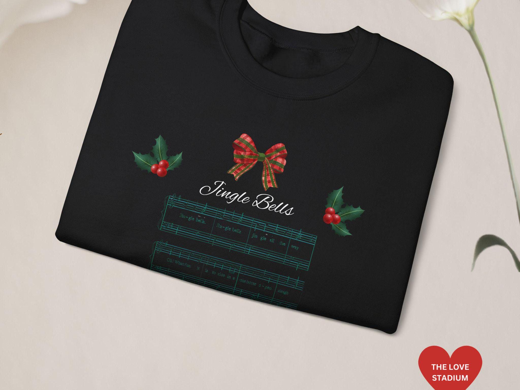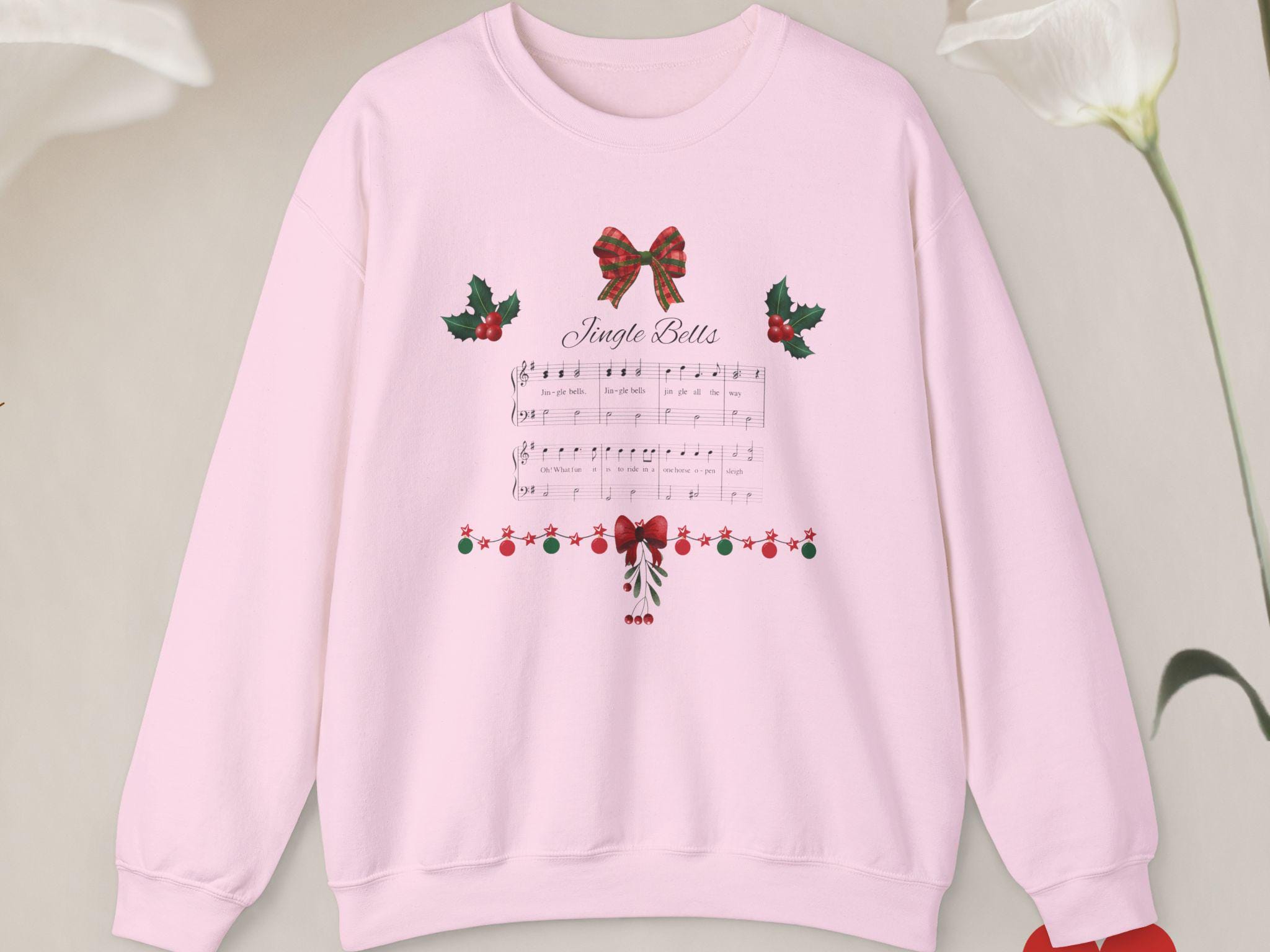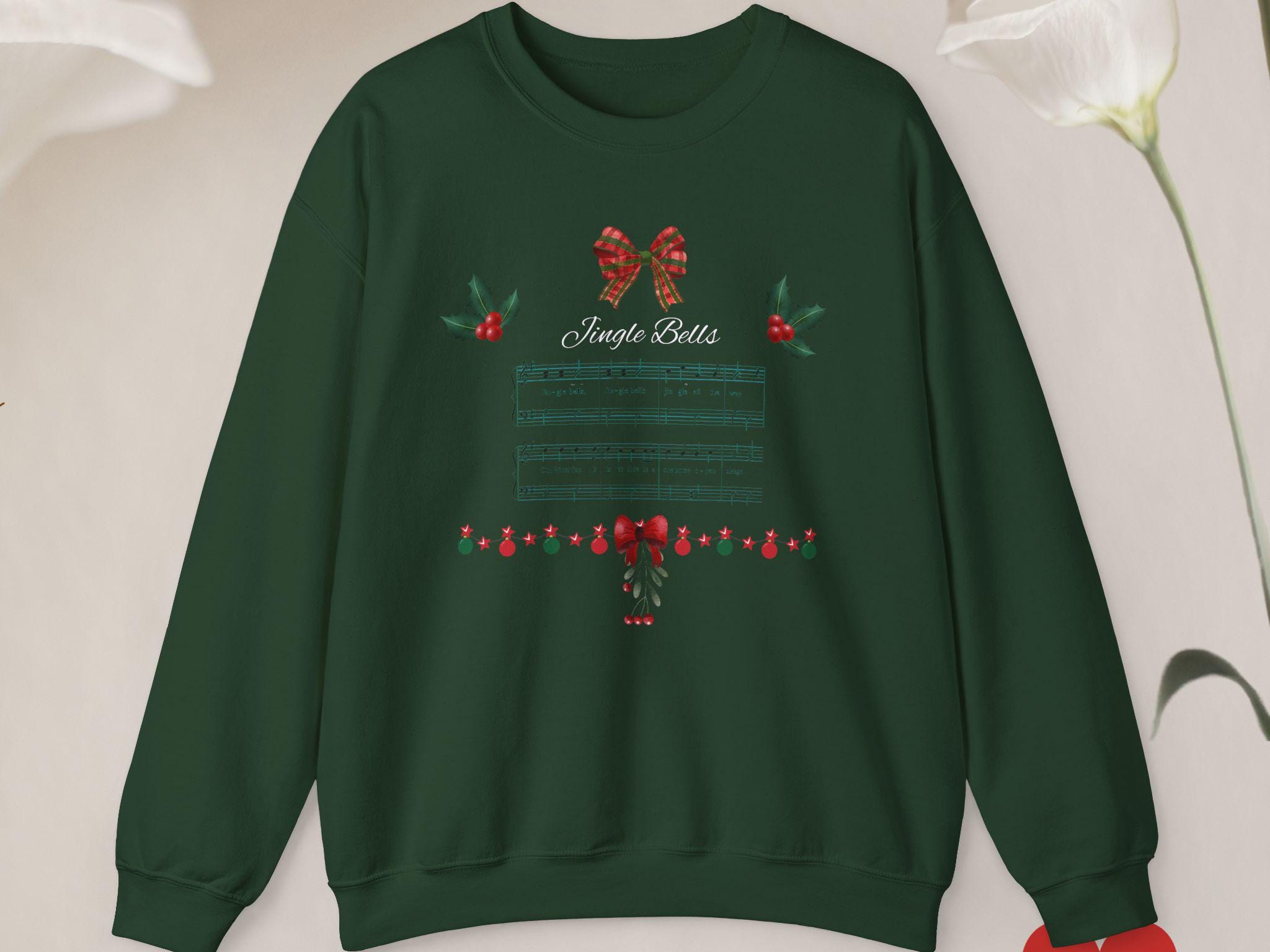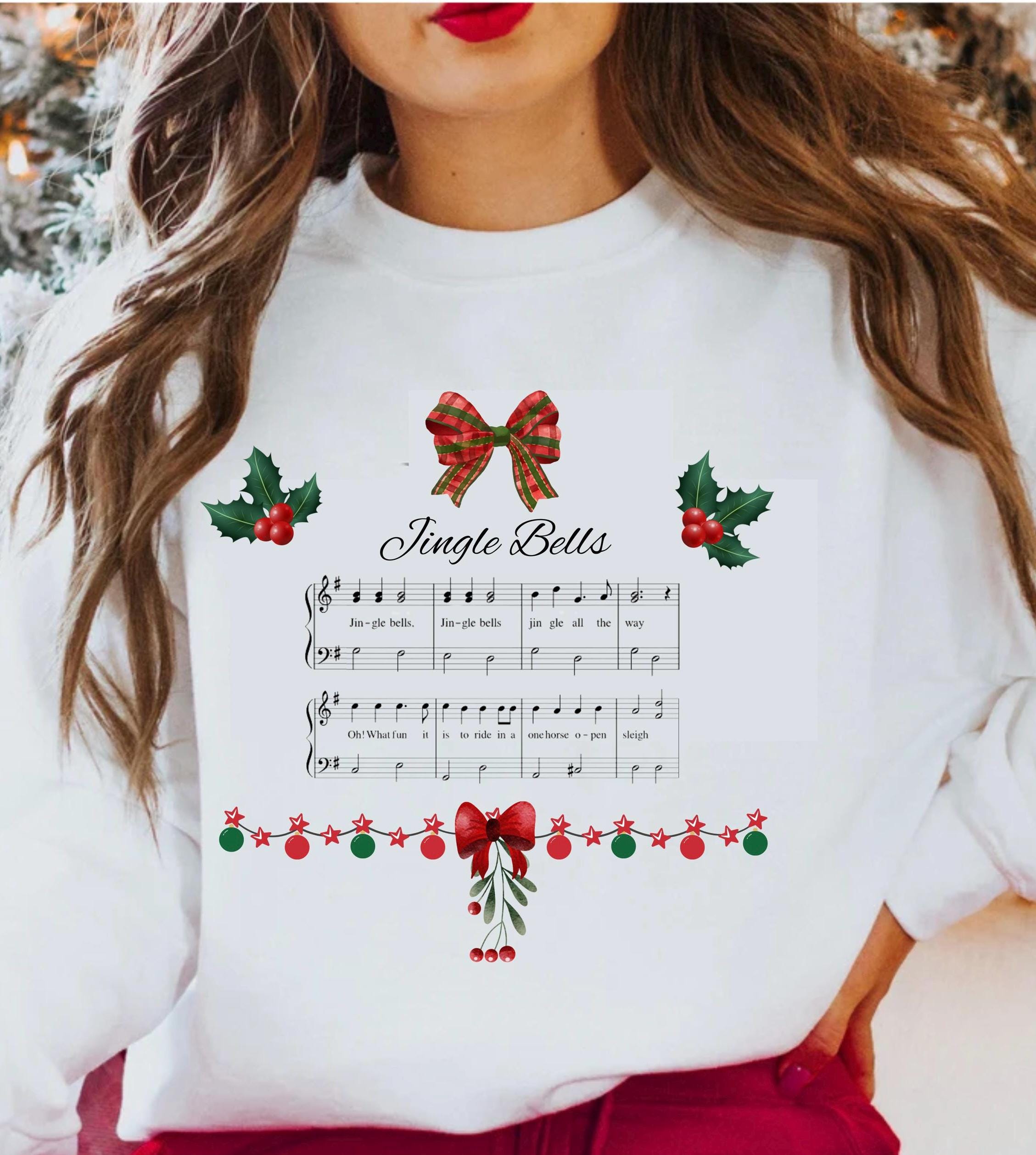 Jingle Bells Merry Christmas Sweatshirt. Celebrate the magic of the festive season with our delightful Jingle Bells Music Sheet Christmas sweatshirt. This cozy sweater features music sheet of Jingle Bells making it a perfect singing family Merry Christmas design that pays homage to your family sing a long, making it a perfect addition to your holiday wardrobe. Whether you're enjoying a festive gathering or simply lounging at home, this Christmas sweatshirt will keep you warm. It's an ideal Christmas gift for any music lover or anyone who adores Christmas. Get ready to spread holiday cheer with this beautiful Jingle Bells Merry Christmas sweatshirt, perfect for celebrating the season in comfort and style!