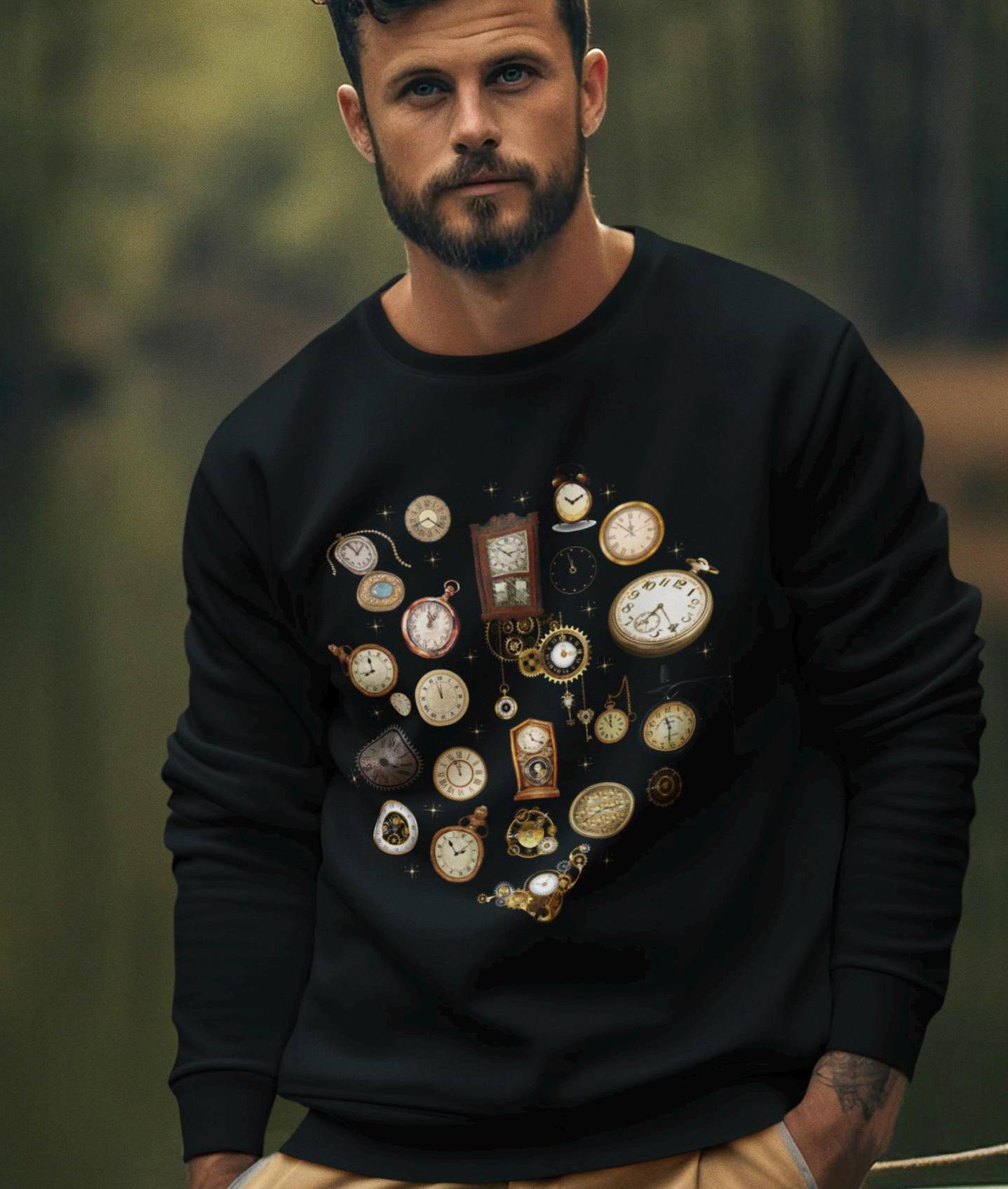 Comfort Colors® What Time Is it? Clock Shirt. Embrace the beauty of time with our horologist sweatshirt, showcasing a stunning array of time pieces, watches, clocks, fob, mantle clocks that capture the essence of horology. This artistic sweatshirt made from soft cotton-blend fabric, ensures a comfortable and relaxed fit for all-day wear.