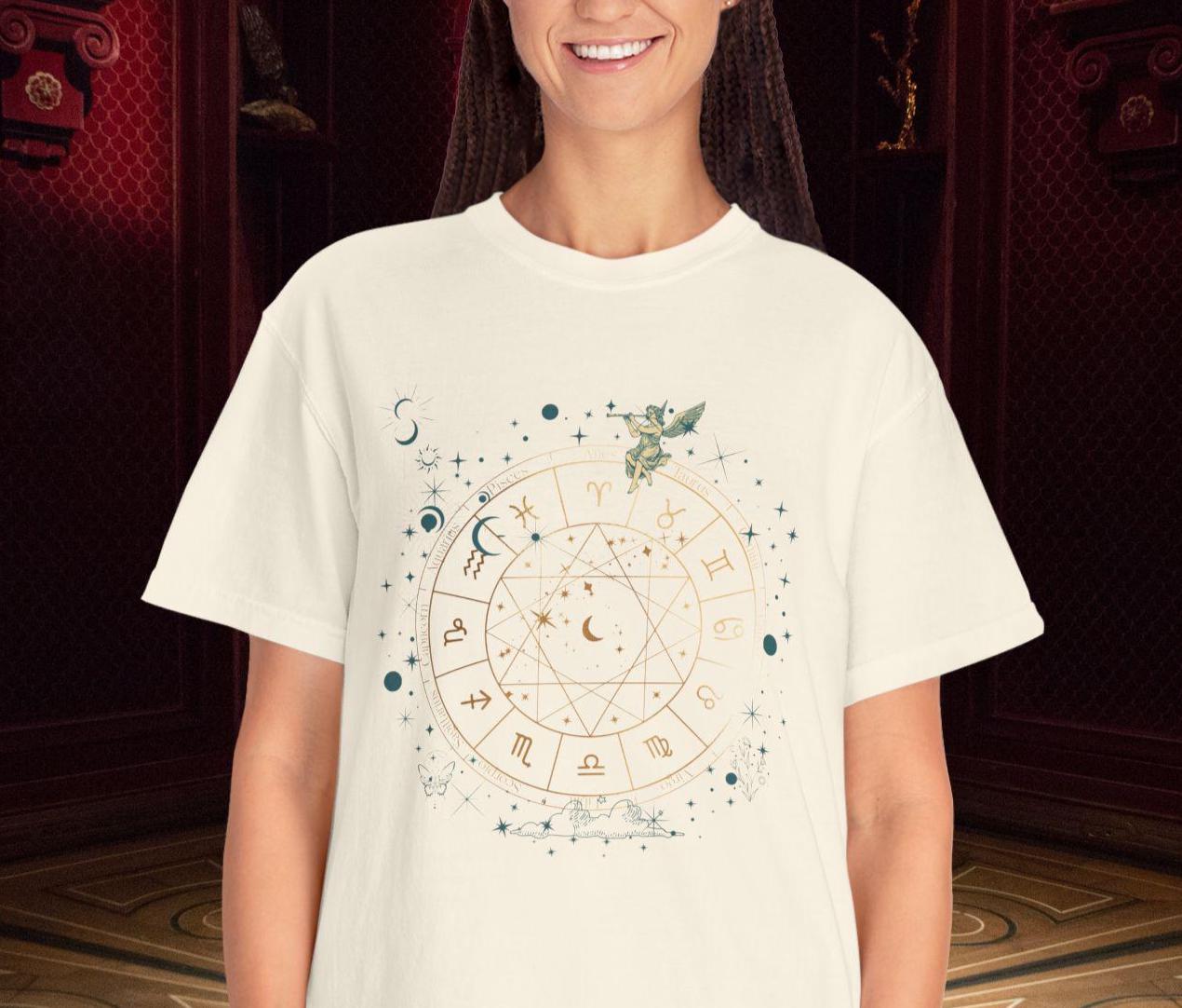 Caring for your astrology shirt is easy – machine wash cold inside out with like colors, tumble dry low, and avoid ironing directly over the print to preserve its vivid look. Each shirt is an authentic product that connects you to the mystical universe. Perfect as a birthday gift or a special treat for yourself or a loved one who adores celestial themes.