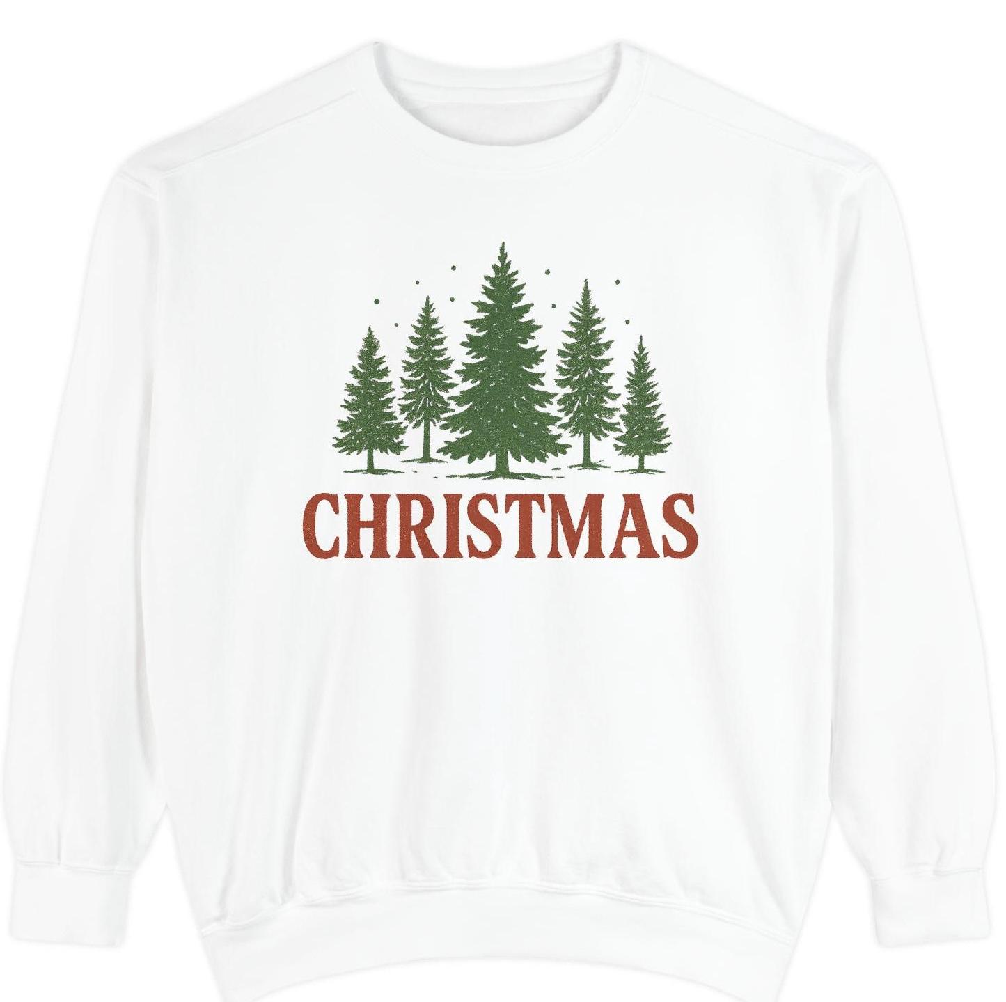 Comfort Colors® Christmas Shirt. Celebrate the Joy of Christmas with our classis Christmas sweatshirt, showcasing a stunning array of Christmas trees that capture the essence of the festive season. This artistic sweatshirt made from soft cotton-blend fabric, ensures a comfortable and relaxed fit for all-day wear.
