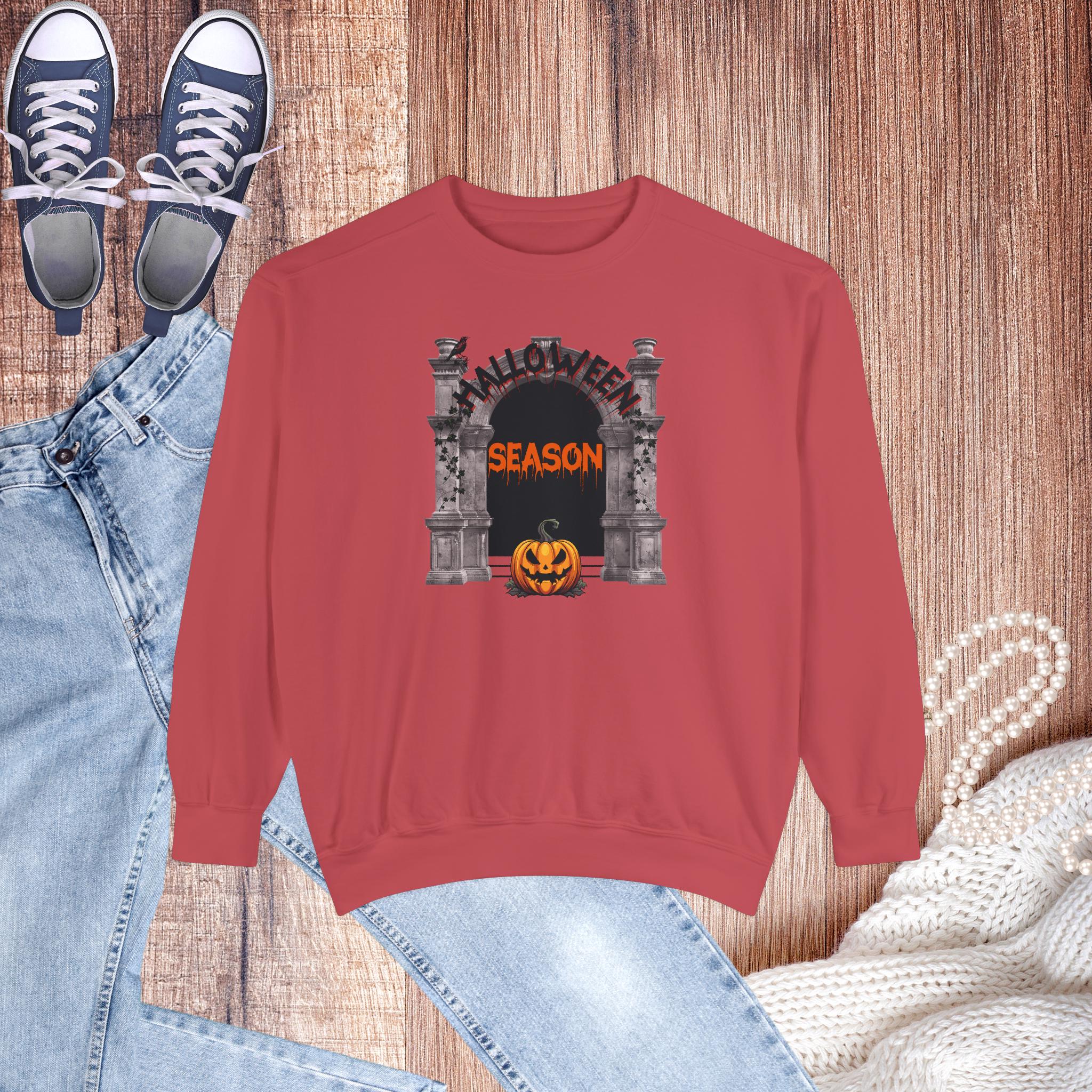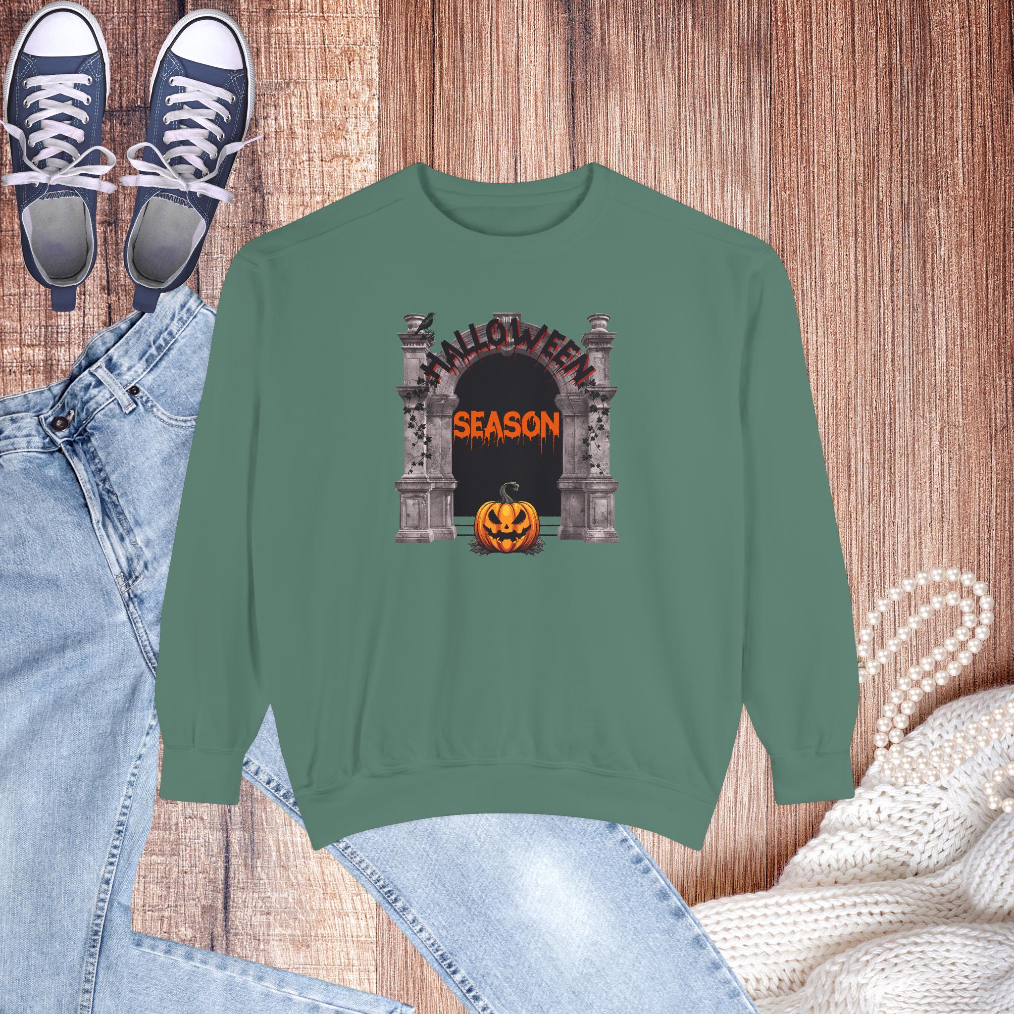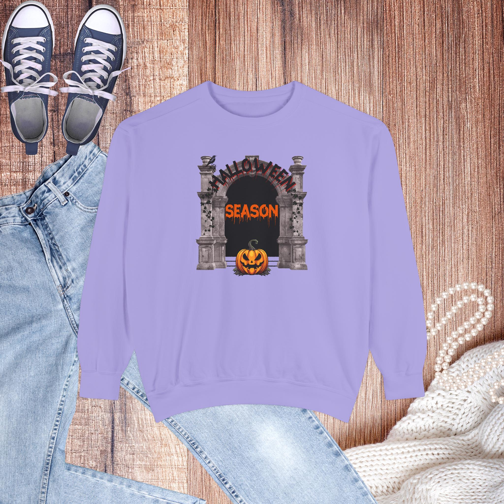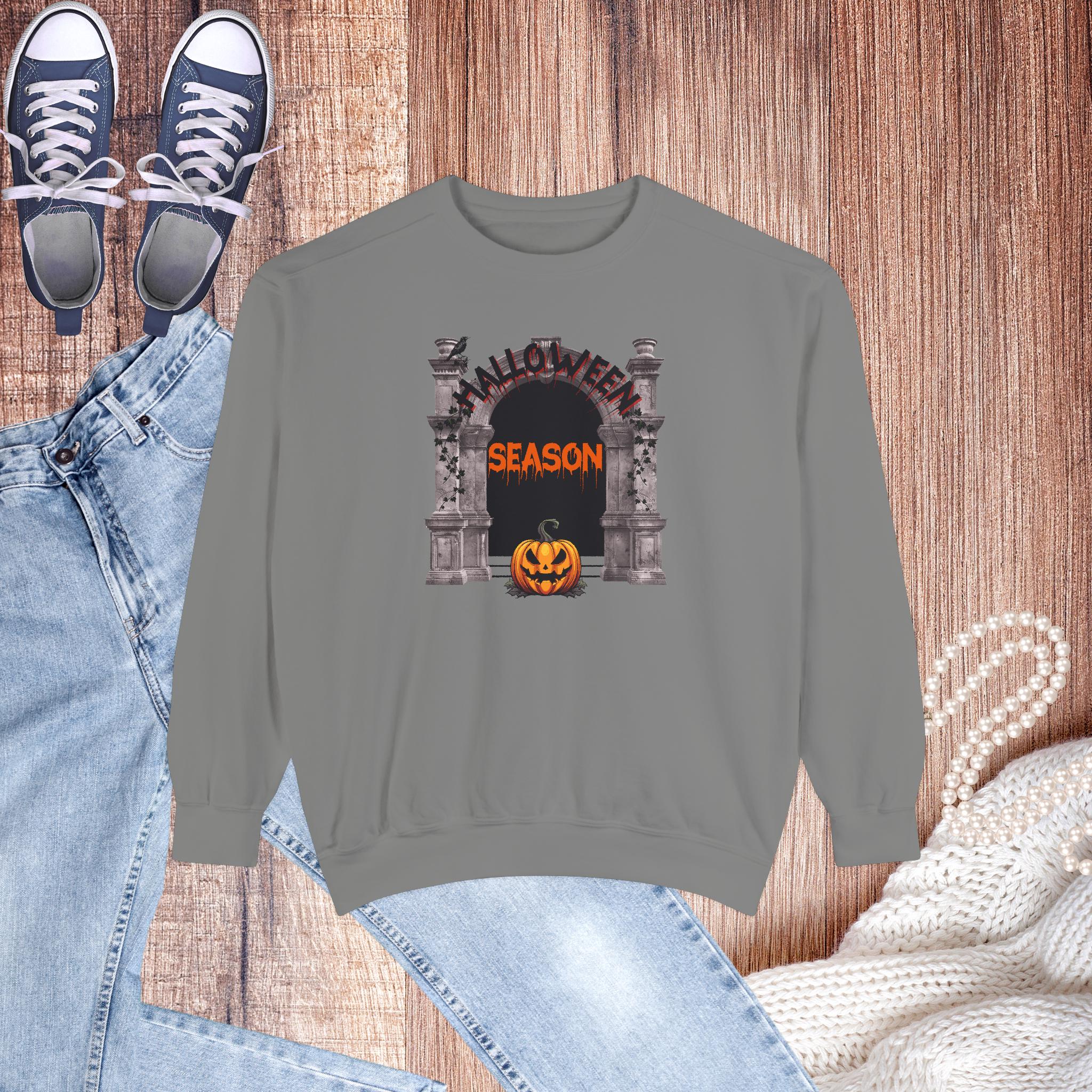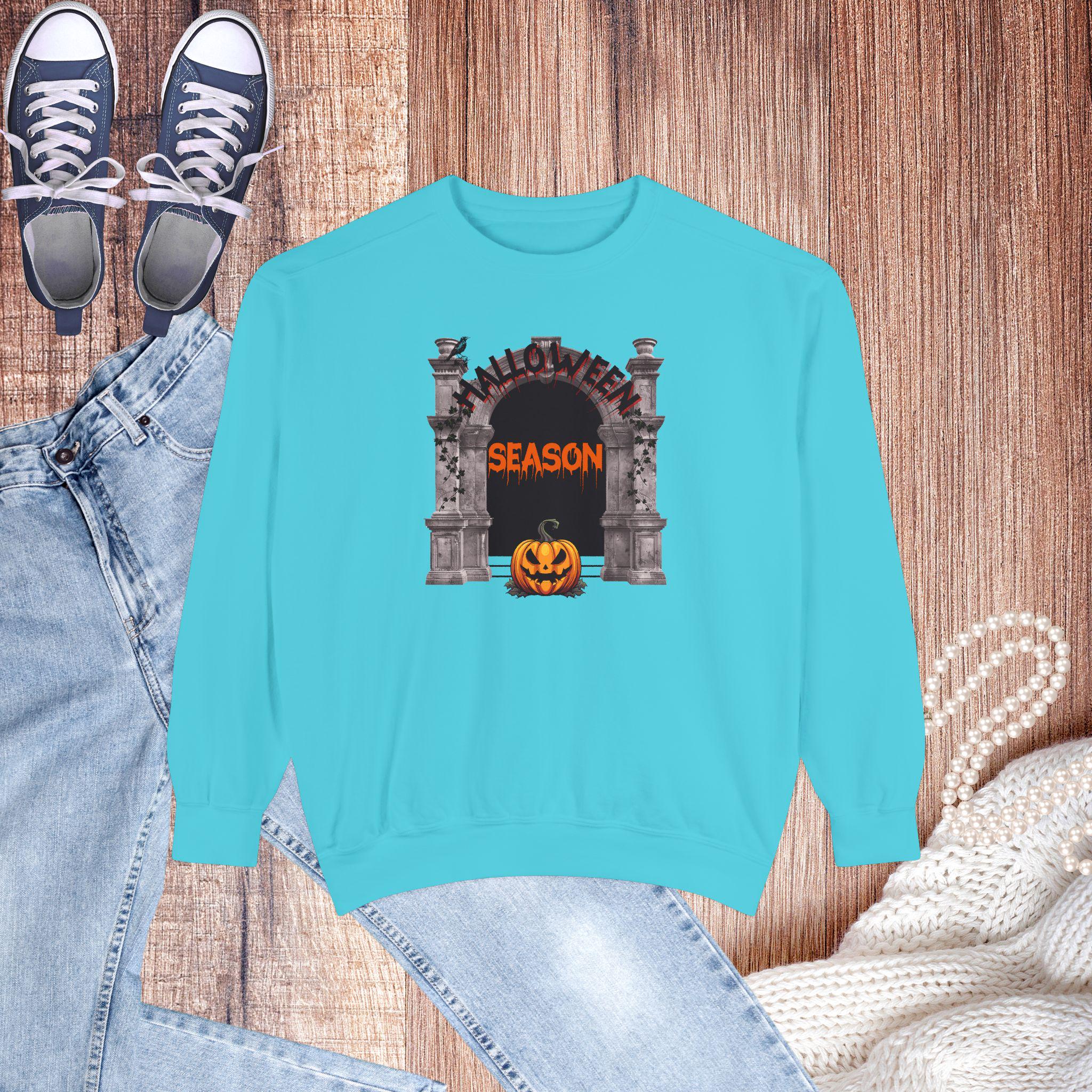 🎃 Comfort Colors “Halloween Season” Sweatshirt – Spooky Cute Vintage Vibes 🎃 Step into spooky season in style! This premium Comfort Colors sweatshirt features a creepy gothic arch, crawling ivy, and a glowing jack-o’-lantern, capturing the perfect mix of vintage horror and trendy Halloween aesthetic.