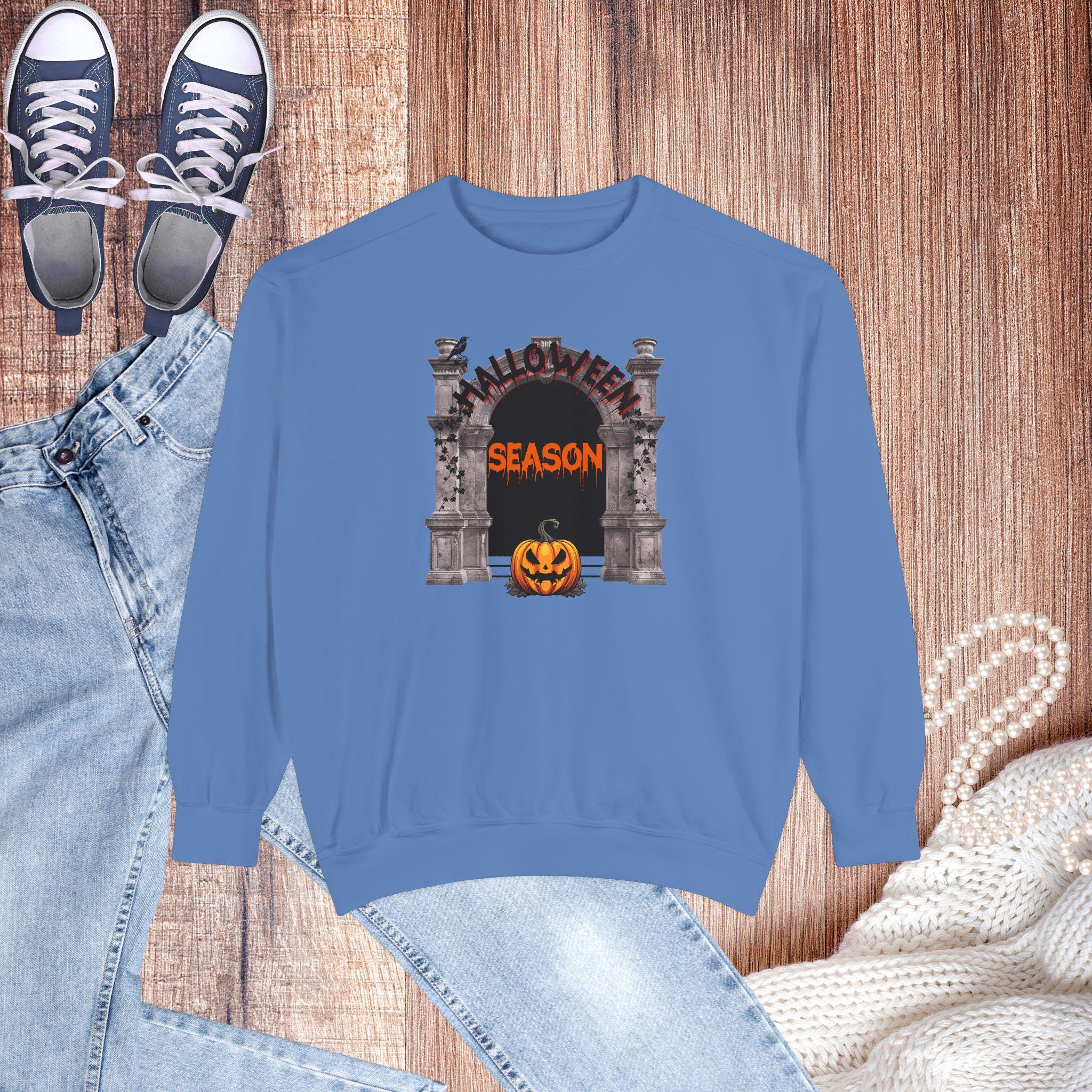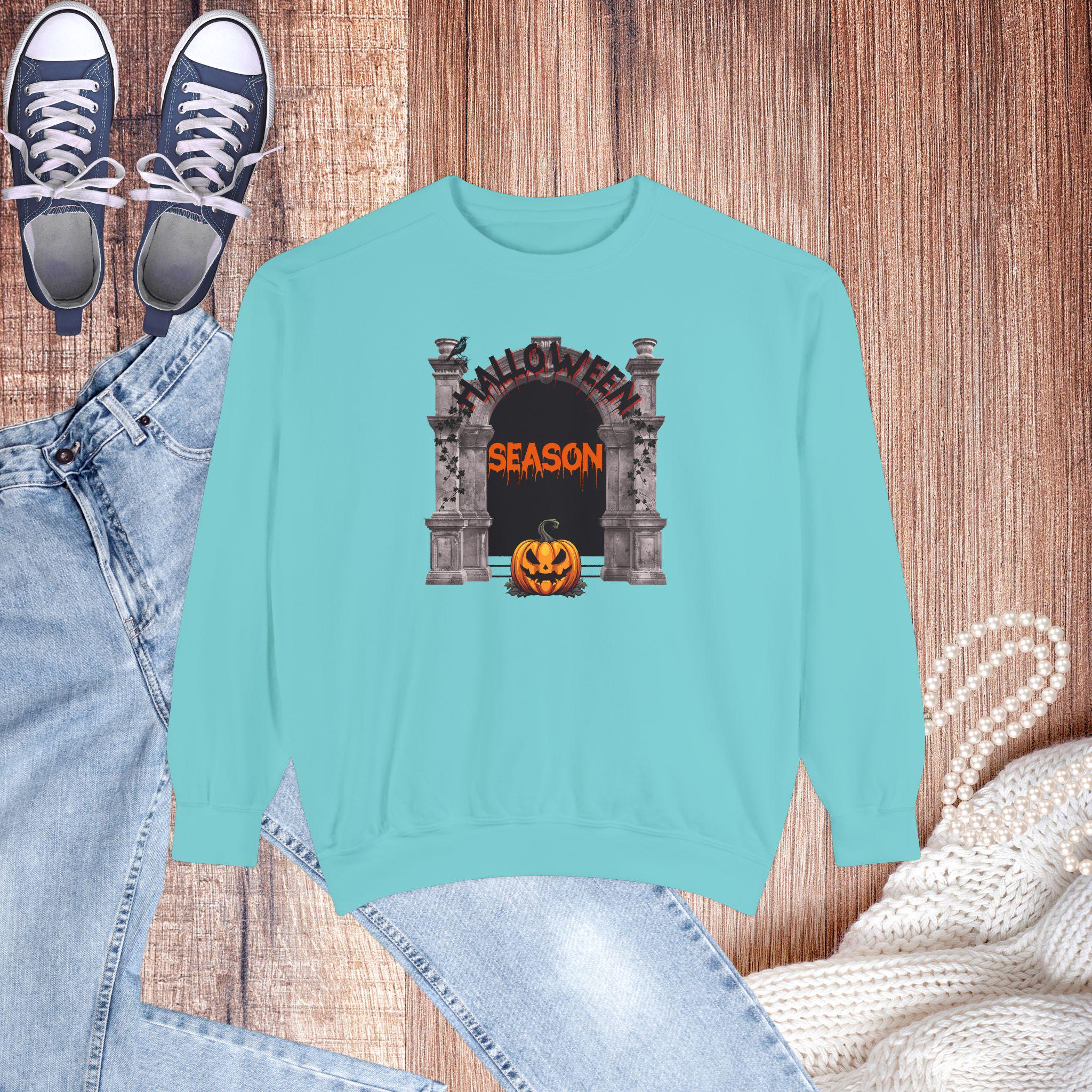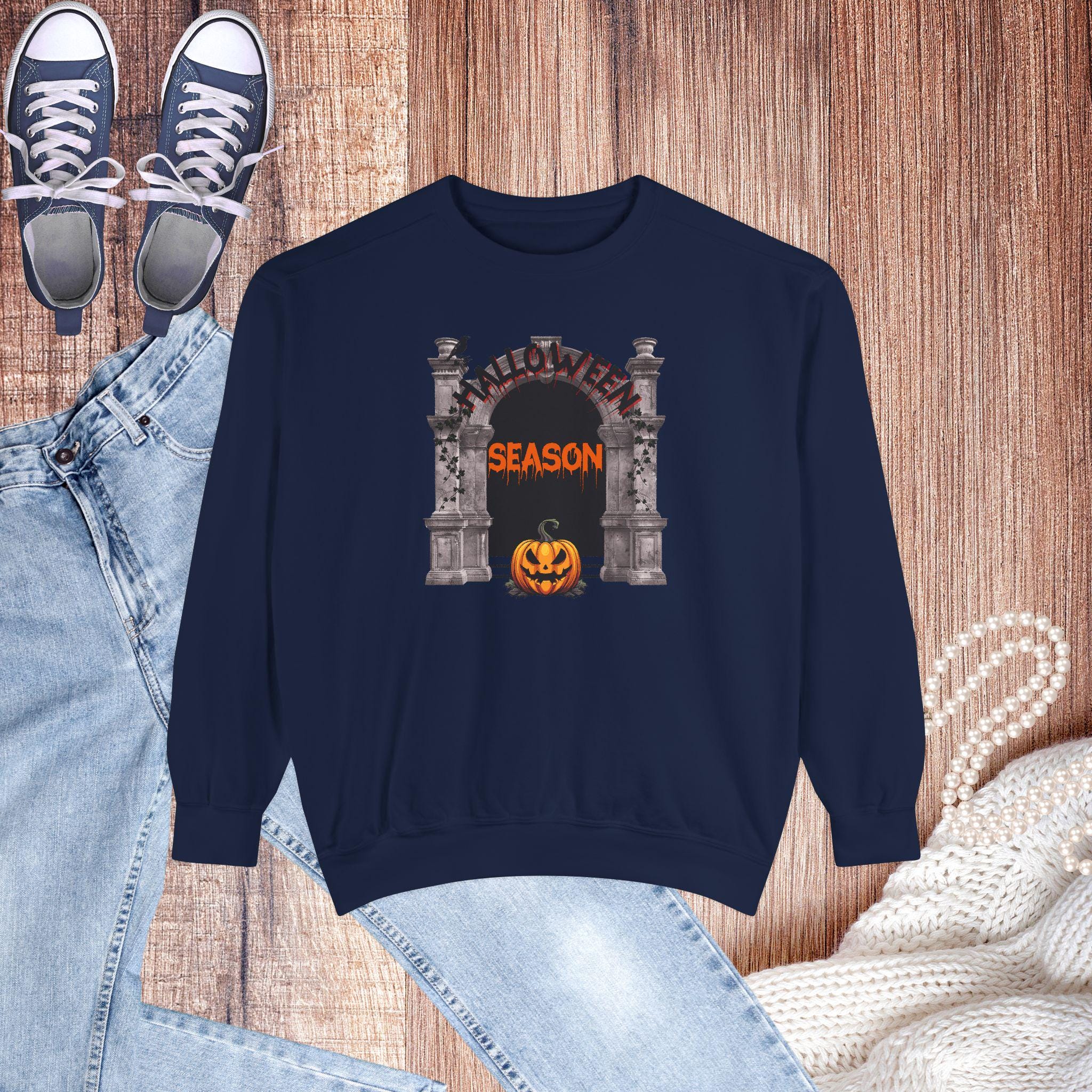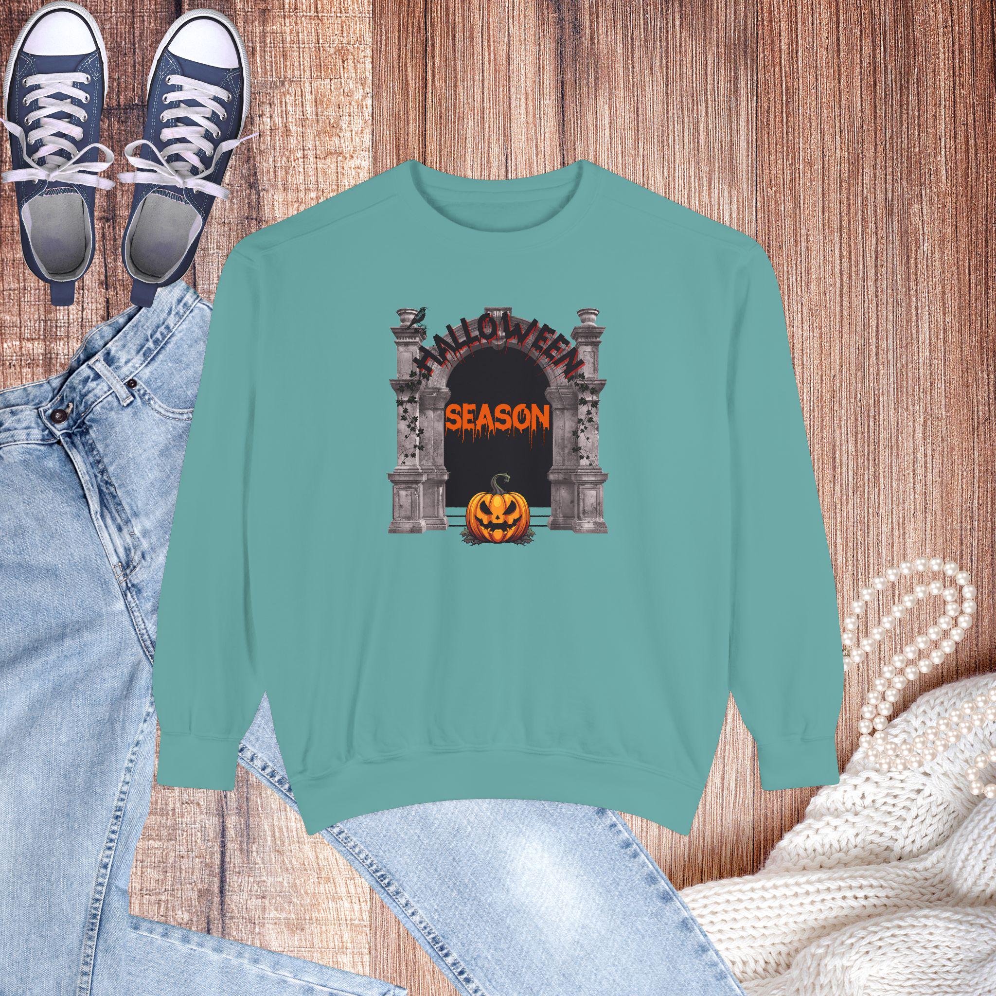 🎃 Comfort Colors “Halloween Season” Sweatshirt – Spooky Cute Vintage Vibes 🎃 Step into spooky season in style! This premium Comfort Colors sweatshirt features a creepy gothic arch, crawling ivy, and a glowing jack-o’-lantern, capturing the perfect mix of vintage horror and trendy Halloween aesthetic.