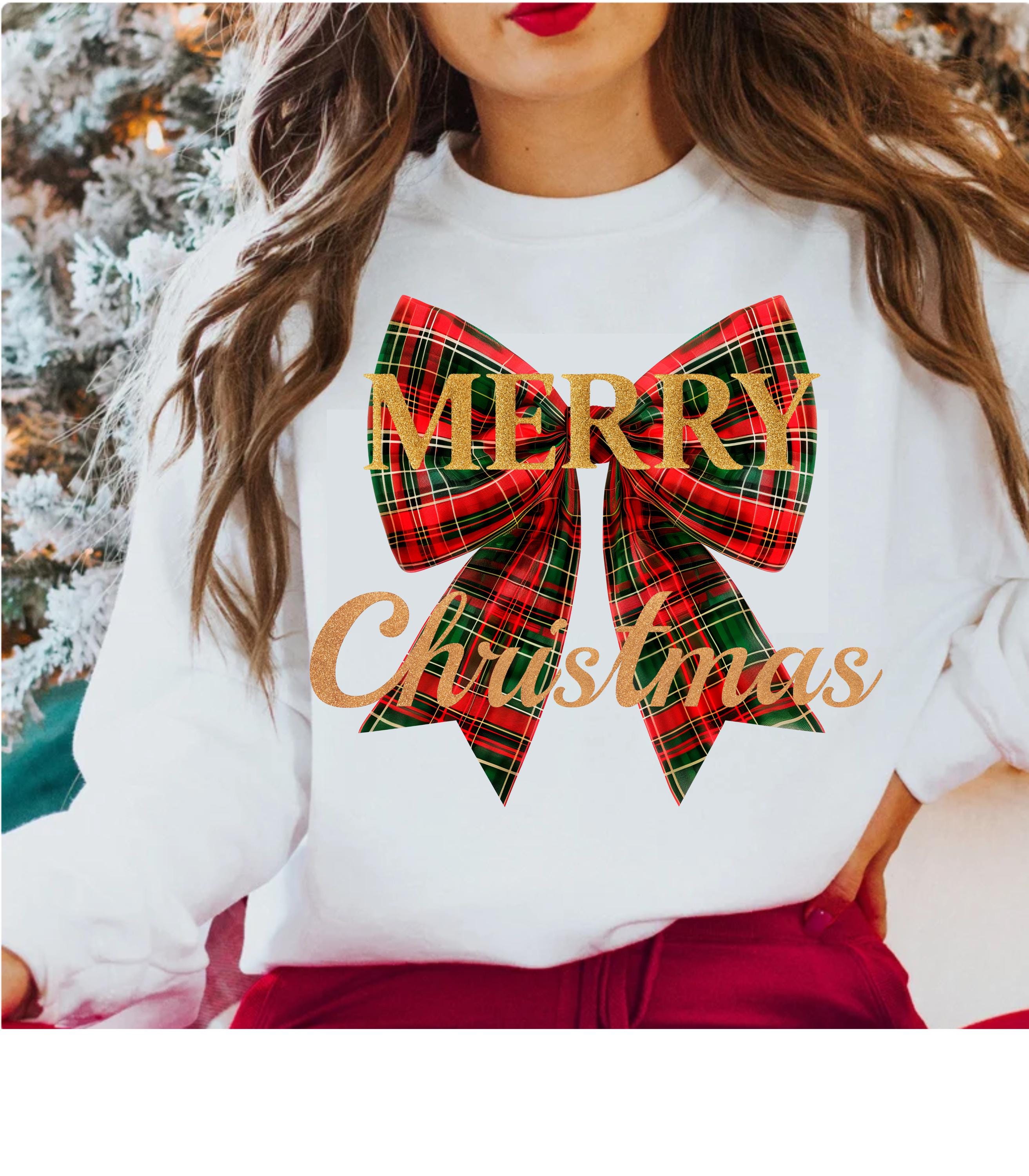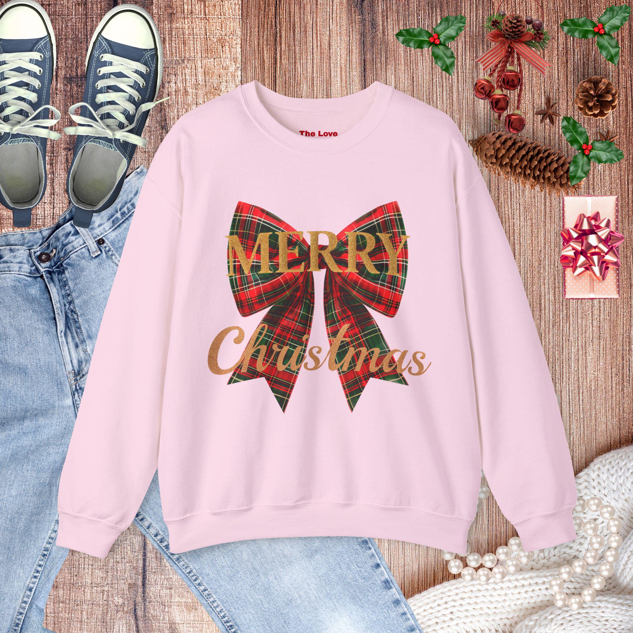 Merry Christmas Sweatshirt. Ralph Lauren inspired colors. Get into the spirit of the season with Luxury and our elegant Christmas Sweatshirt. This favourite Christmas Tartan Bow sweatshirt combines comfort and luxurious style, making it perfect for chilly holiday gatherings or lounging at home. The tarten design captures the essence of Christmas while ensuring you stand out in the festive crowd.